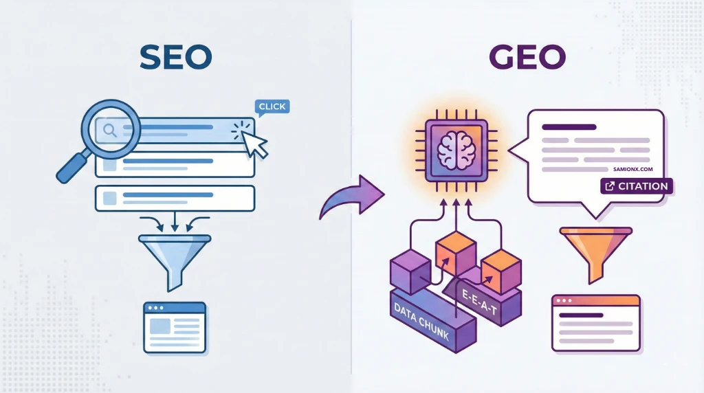 Le classement Google ne suffit plus. Cet article explore la transition vers le GEO (Generative Engine Optimization), une nouvelle approche où l'objectif n'est plus le clic, mais la citation par l'IA. Apprenez à structurer vos données en chunks, à renforcer votre E-E-A-T et à devenir la source de vérité incontournable pour les moteurs génératifs.